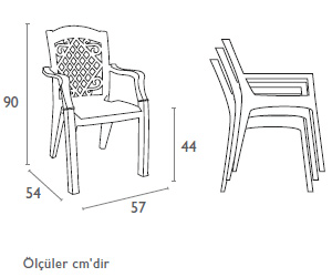 Özel kompaunt polipropilenden mamül olan Orjinal koltuk istiflenebilir,hava kosullarına dayanıklıdır ve antistatik özellik tasır.