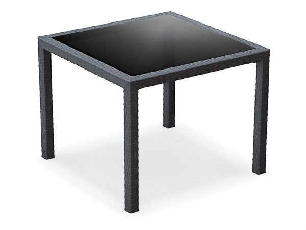 0870 Белый 7870 Темно-серый 9870 Кофейный Бали стол из сополимерной и алюминиевой смеси, закаленная стеклянная поверхность с эффектом ротанга, разборкой и толщиной 6 мм. Он совместим со всеми погодными условиями, легко очищается, разлагается, ржаветь, УФ-добавка является незаменимым элементом для тех, кто принимает комфорт и спокойствие вдали от угасания цвета.