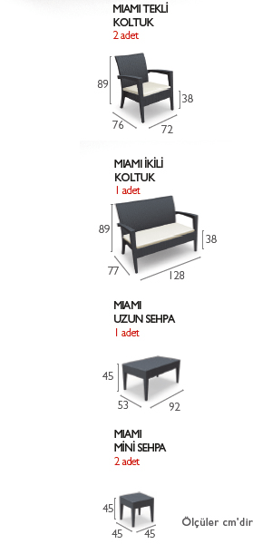 97840 Dark Grey 0840 White 9840 Coffee Miami Set состоит из 1 двухместного сиденья, 2 односпальных сидений, 1 среднего стола, 2 боковых стола и 3 матрасов.